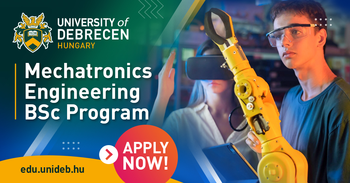 The Mechatronics Engineering BSc program at the University of Debrecen is designed to train professionals capable of synergistically combining mechanical engineering with electronics, electrotechnics, and computer control. Students will able to complete routine design, operation, and maintenance of mechatronic equipment and processes, to introduce and apply mechatronic technologies, to organize energy-efficient and environmental process and production management, and to complete average tasks in engineering development and design considering the needs of the international labour market.Download our Mechatronics Engineering, BSc brochure